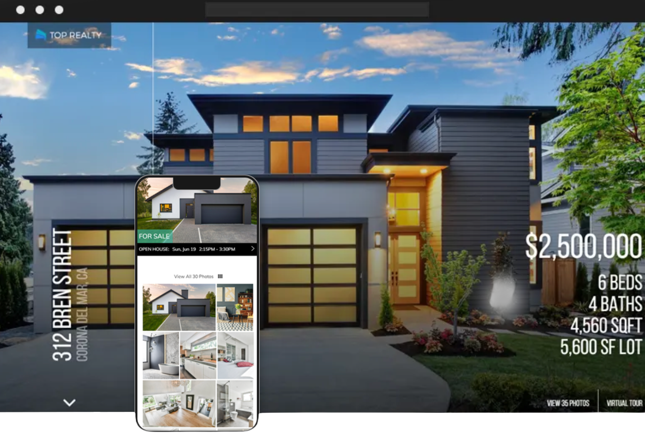 Customize a website for your next listing, a one-stop domain for all your marketing materials.